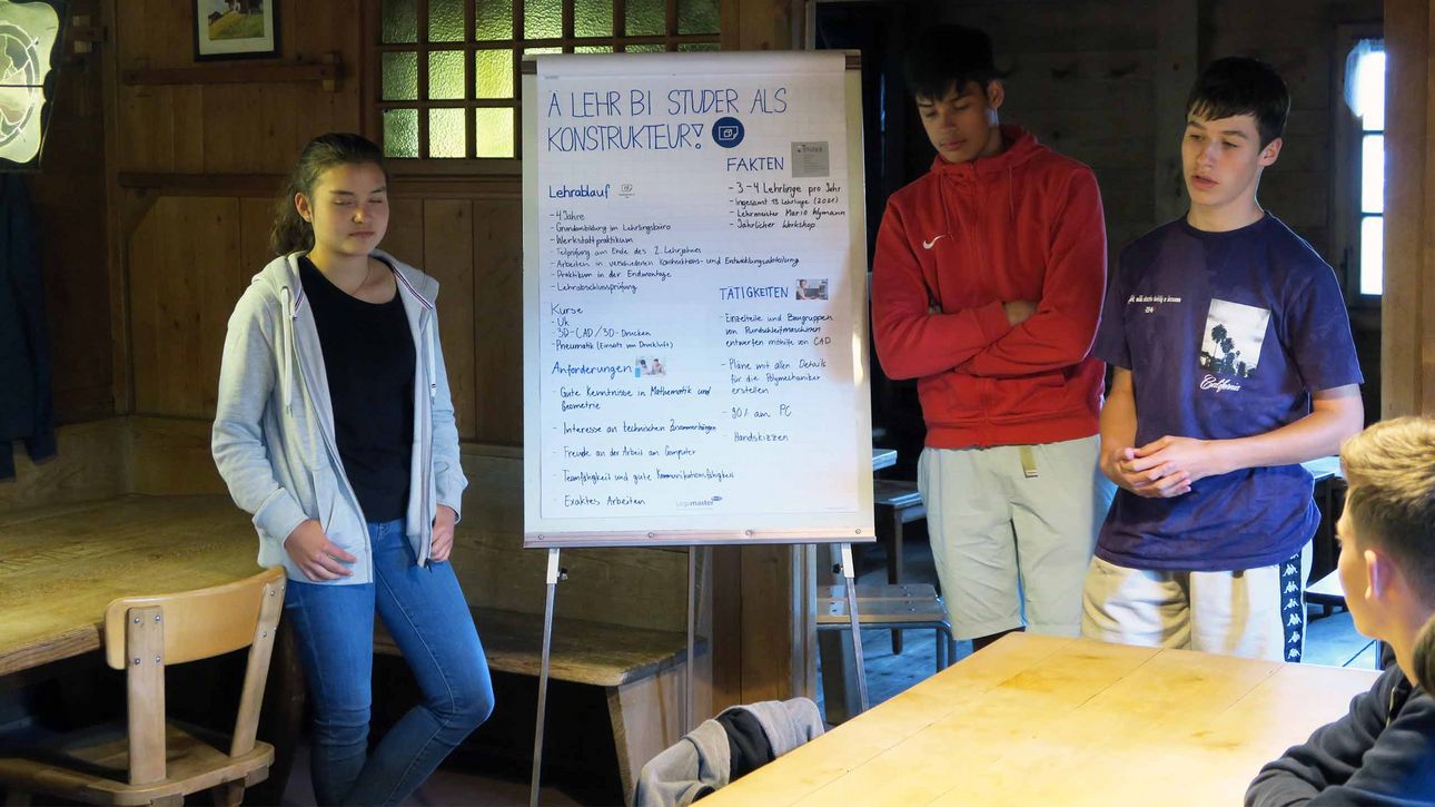 Am Abend stellten wir als Berufsgruppe unsere Berufe vor, sodass die anderen Lernende einen genaueren Überblick bekamen, was wir für Aufgaben an unserem Arbeitsplatz bearbeiten müssen. Anschliessend stellten wir Lernende uns persönlich vor, um voneinander mehr erfahren zu können.