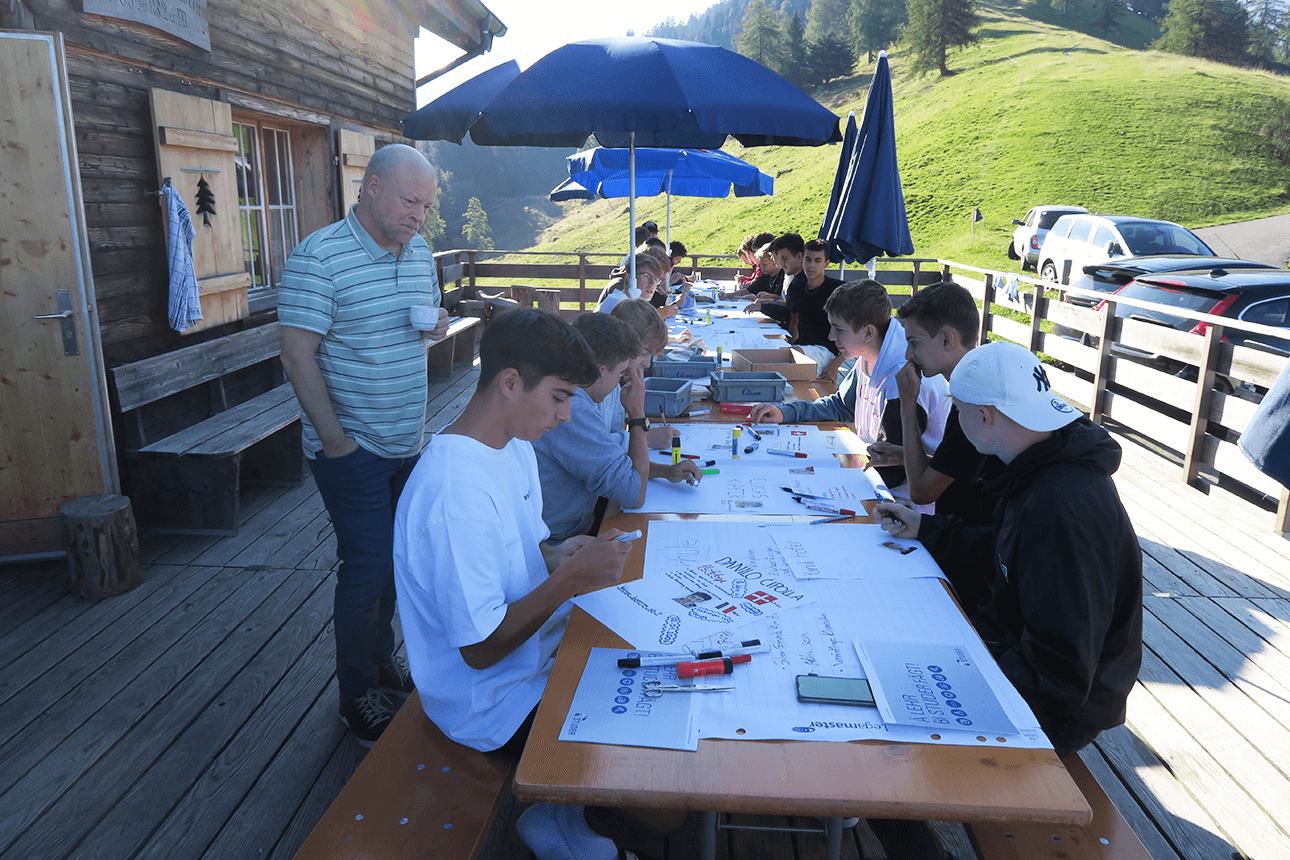 Der Dienstag war Tag der Berufsbildung. Um die Freundschaft der neuen Lernenden zu vertiefen, ging es am Morgen in Gruppen auf eine Fotosafari. Das Ziel bestand darin, in verschiedenen Kategorien das beste Foto zu schiessen. Hochhinaus ging es dann beim Teamwettbewerb am Nachmittag, bei der die Gruppe mit dem höchsten Turm gewann.