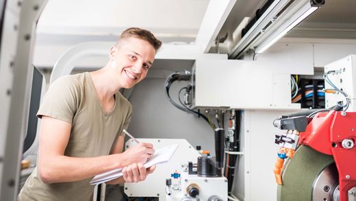 Automatiker/-innen stellen einzelne elektrische Baugruppen für unsere Rundschleifmaschinen her. Sie montieren die vorbereite - ten Baugruppen an die mechanisch fertig aufgebaute Maschine und nehmen diese in Betrieb. Durch ihr breites Grundwissen ist es ihnen möglich, am gesamten Maschinensortiment von STUDER zu arbeiten und die Maschine auch im Servicefall zu beherrschen. Dabei ist das handwerkliche Geschick bei der Montage ebenso wichtig, wie das Verstehen der Zusammenhänge zwischen Mechanik, Elektrotechnik und Software bei komplexen Rundschleifmaschinen.